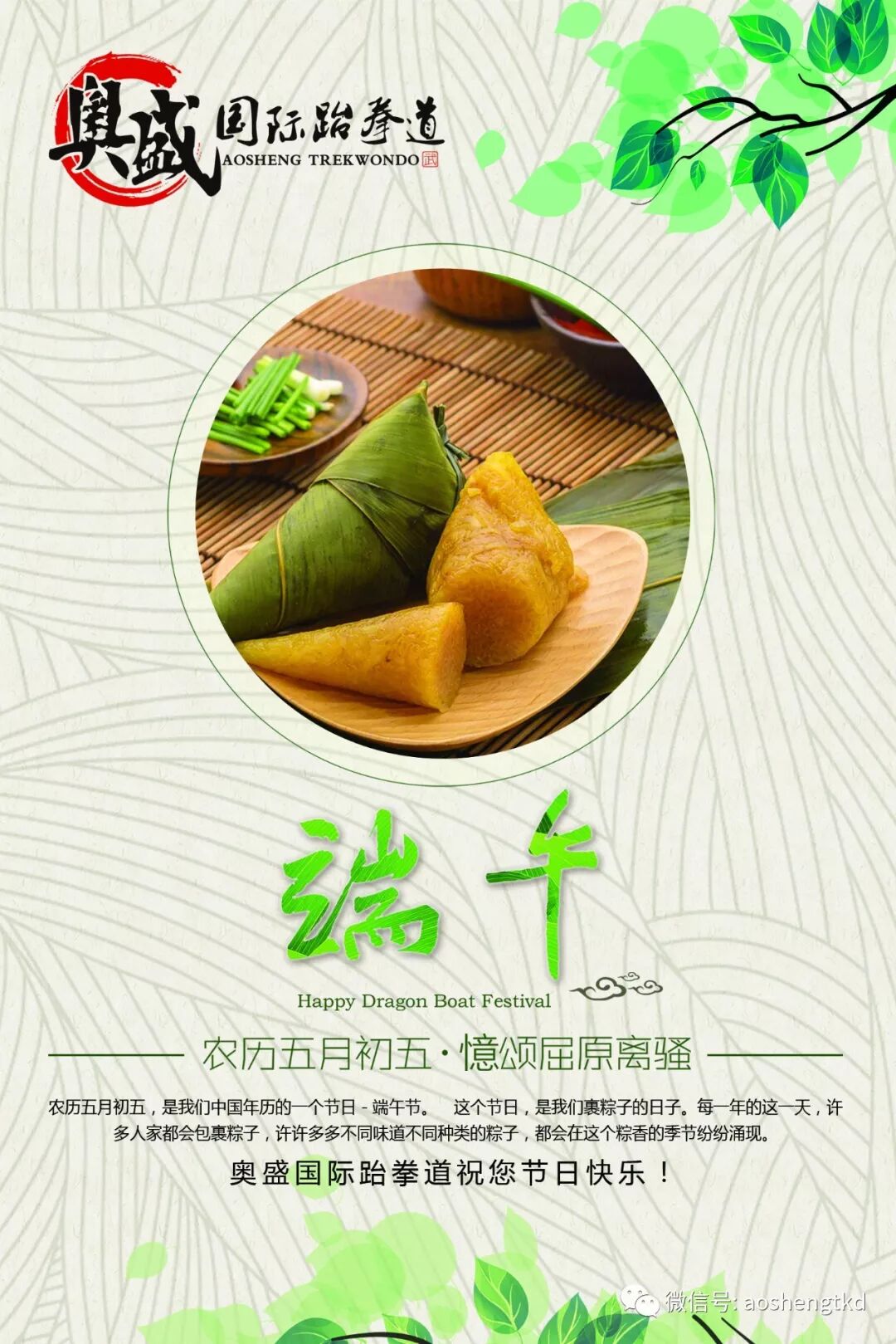 端午节农历五月初五,是中国民间的传统节日——端午节,它是中华民族古老的传统节日之一。端午节还有许多别称,如:午日节、重五节,五月节、浴兰节、女儿节,等等。▍端午食粽父亲辛苦了2018双节相遇奥盛跆拳道祝愿天下的父亲端午安康、阖家祥瑞、福星高照!